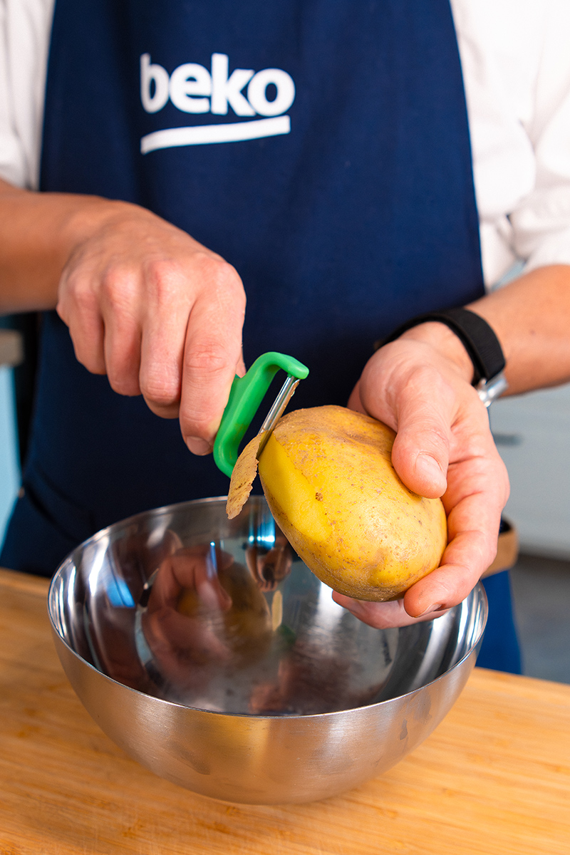 Tip Beko: Väčšina ľudí si zemiakové placky spája s panvicou, ale táto moderná a zdravšia verzia nevyžaduje olej: môžete ju pripraviť buď v teplovzdušnej rúre na špeciálnom rošte AirFry, alebo v teplovzdušnej fritéze. Vstavaná teplovzdušná rúra Beko BBIS17300BMPSEC rovnomerne distribuuje teplo vďaka technológii AeroPerfect, vďaka čomu sú dokonalé nielen zemiakové placky, ale aj zelenina alebo mäso. Navyše tento typ pečenia šetrí energiu, pretože teplo je distribuované efektívne.