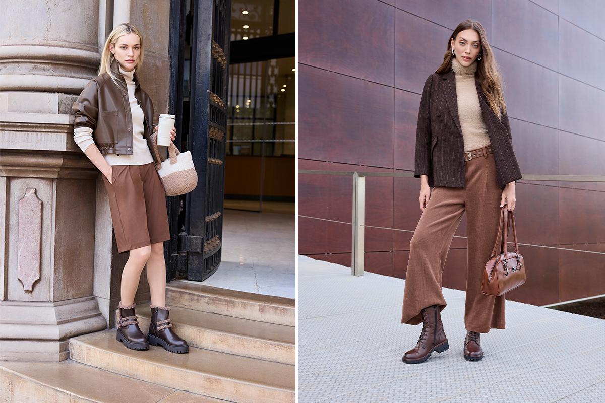 Masívne opasky (chunky belts), ktoré zvýrazňujú pás a vytvárajú peknú siluetu, často s výraznými prackami alebo metalickým povrchom. Kabelky a šály v jesenných farbách ako červená, vínová, horčicová alebo smaragdová, ktoré dodajú outfitu farebný akcent.
