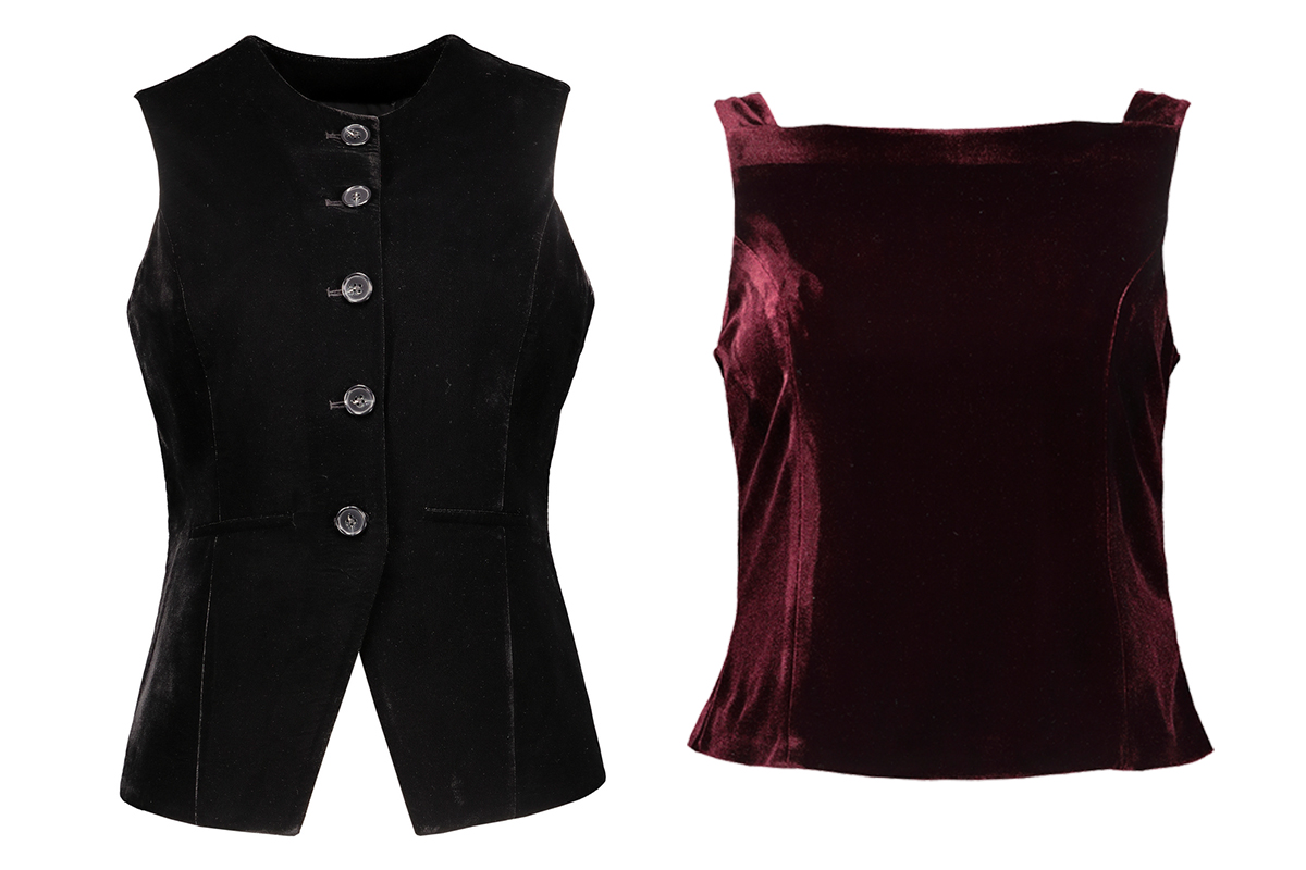 - zamatový top so širokými nohavicami