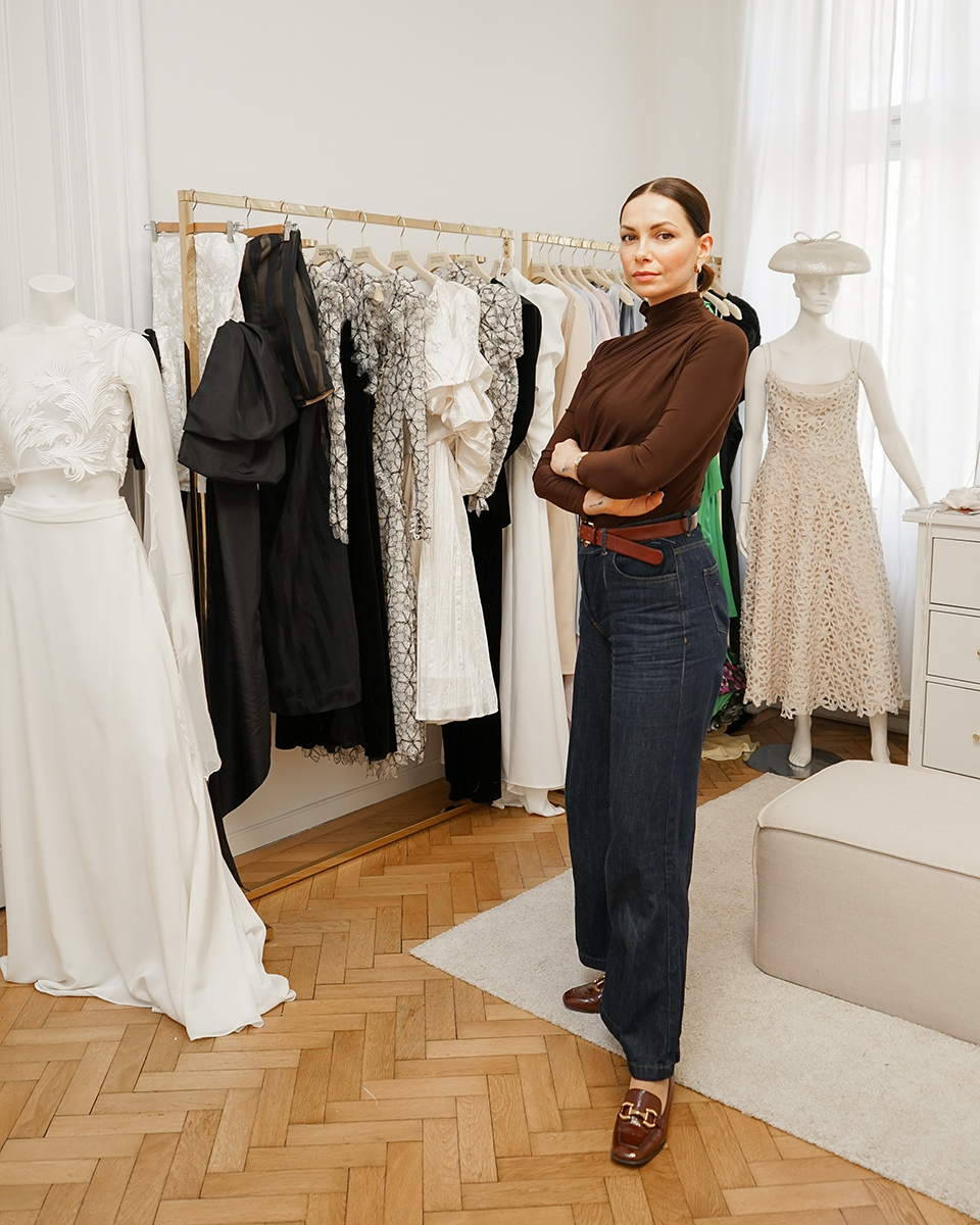 Jej meno sa síce preslávilo najmä v svadobnej móde, no práve večerné a plesové šaty stáli pri jej začiatkoch – rovnako ako modely určené na každodenné nosenie. Sama dizajnérka často hovorí, že svadobné a plesové šaty majú k sebe veľmi blízko – no zatiaľ čo svadobná móda má svoje estetické pravidlá a decentnosť, v plesovej si môže v úvodzovkách „vyblázniť“ - farby, štruktúry aj strihy. Vo svojom bratislavskom ateliéri navrhuje večerné róby, koktejlové šaty či outfity na červený koberec a obliekla množstvo známych žien – od svetových supermodeliek až po svadobné mamy. Vždy pritom kladie dôraz na individualitu: každá žena v jej modeli dostáva niečo, čo nekričí „trend“, ale hovorí jasne: „toto som ja“. Nižšie preto ponúkame niekoľko praktických rád a tipov, ako k výberu spoločenských šiat pristúpiť – ako nájsť tie svoje vysnívané, či je vhodnejšie investovať do kúpy alebo si róbu požičať a ako si už teraz vybudovať vlastný šatník s kúskami, ktoré vám poslúžia aj na ďalšie roky.