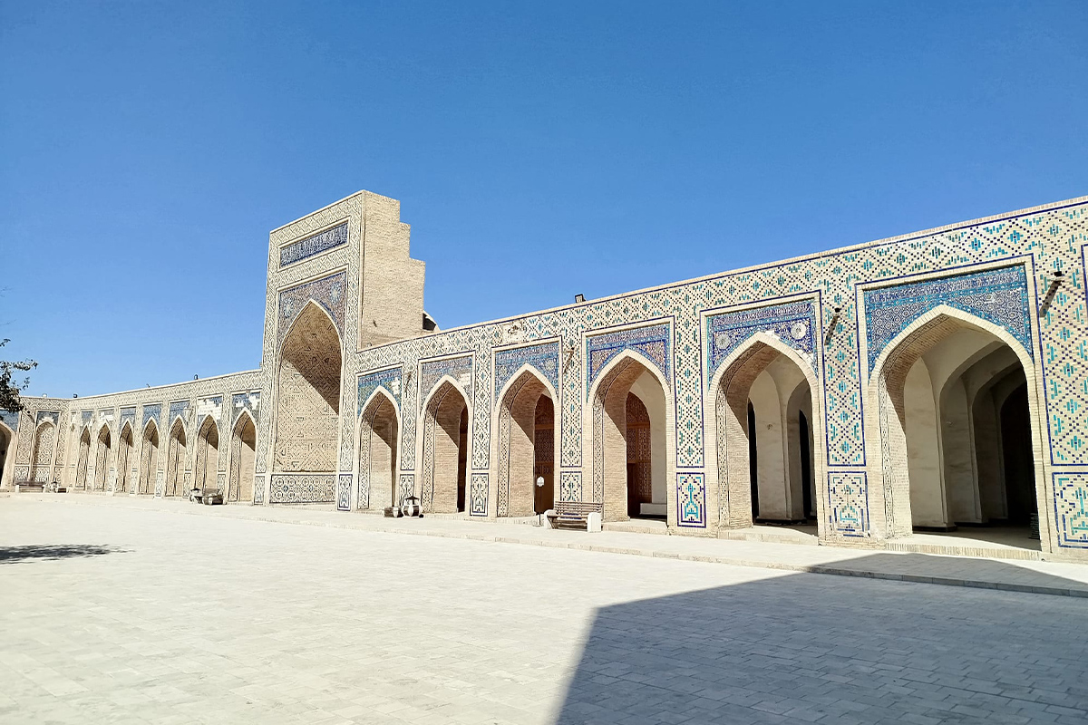 Buchara, jedno z najstarších a najslávnejších miest Uzbekistanu, je už viac ako dve tisícročia centrom učenosti, duchovna, obchodu a umenia. Do mesta sme dorazili večer. Siedmy deň bol veľmi náročný, pobehali sme, čo sa dalo. Kedysi významné zastavenie na Hodvábnej ceste, dnes očarí svojich návštevníkov kombináciou histórie a živej tradície, ktorá sa zachovala napriek stáročiam zmien a režimov. Mesto sa nachádza v púštnej oblasti, no napriek tomu tu už v 9. storočí vznikli islamské školy, mešity a paláce, ktoré lákali učencov, mystikov i cestovateľov. Buchara bola centrom islamskej vedy, kde pôsobili významní myslitelia ako Avicenna a Al-Buchárí. Dnes je Buchara živým mestom, ktoré si zachovalo nielen architektúru z čias chánov (panovník) a emirov (veliteľ moslimského vojska), ale aj ducha pohostinnosti a tradície. Prechádzka jej starými uličkami je ako cesta späť v čase – len občas ju prerušia moderné kaviarne či mobilný telefón v ruke predavača kobercov. Jedným z najikonickejších miest v Buchare je mešita Chor Minor – v preklade Štyri minarety. Táto nezvyčajná stavba so štyrmi identickými vežami bola pôvodne súčasťou medresy (islamská náboženská škola vyššieho typu, najčastejšie založená pri mešite). Dnes slúži ako orientačný bod a symbol mesta. Hoci je menšia než mnohé iné mešity, jej architektonická symetria a tichá atmosféra z nej robia obľúbené miesto návštevníkov aj miestnych veriacich.
