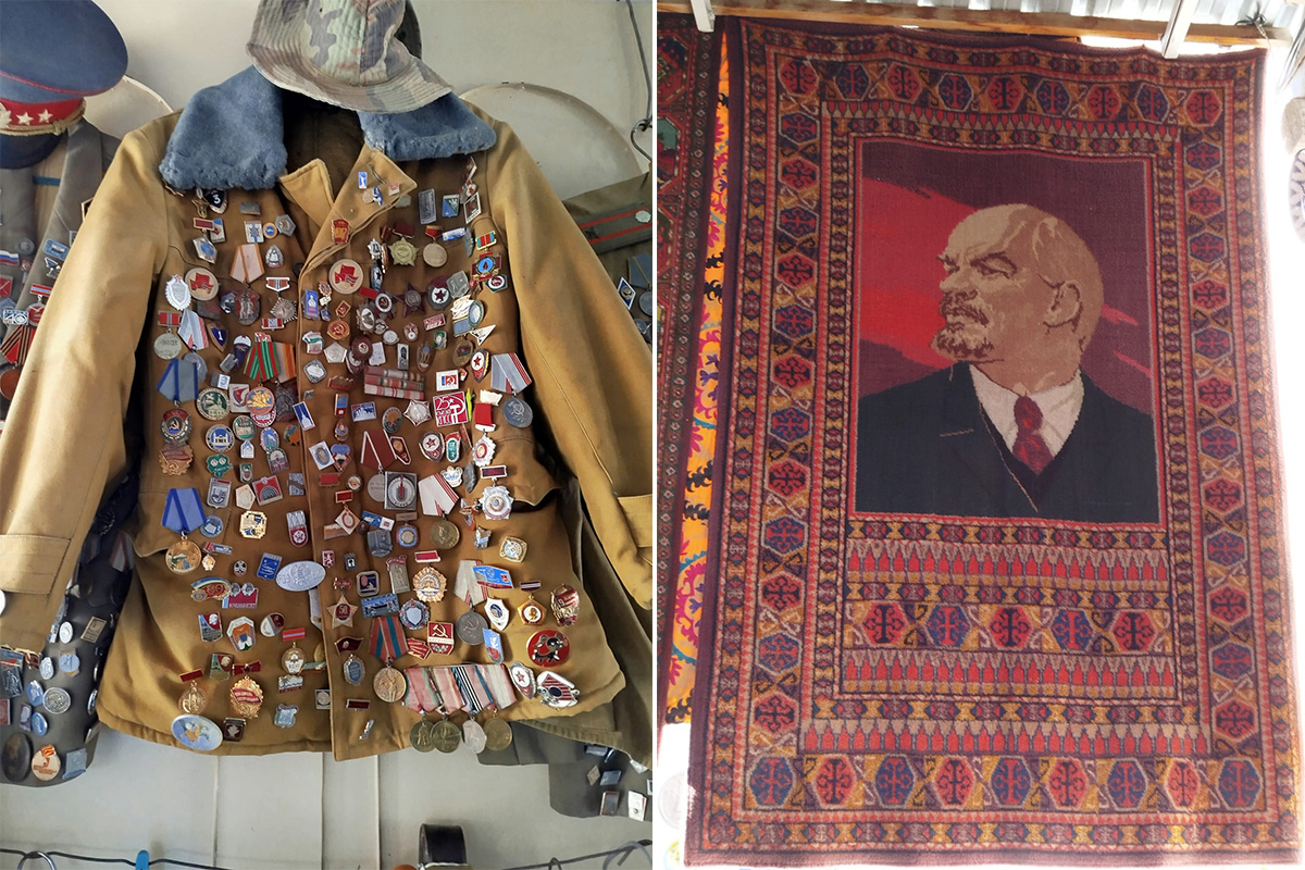Nostalgia v rôznych odznakoch, obrazov Lenina, historických uniforiem