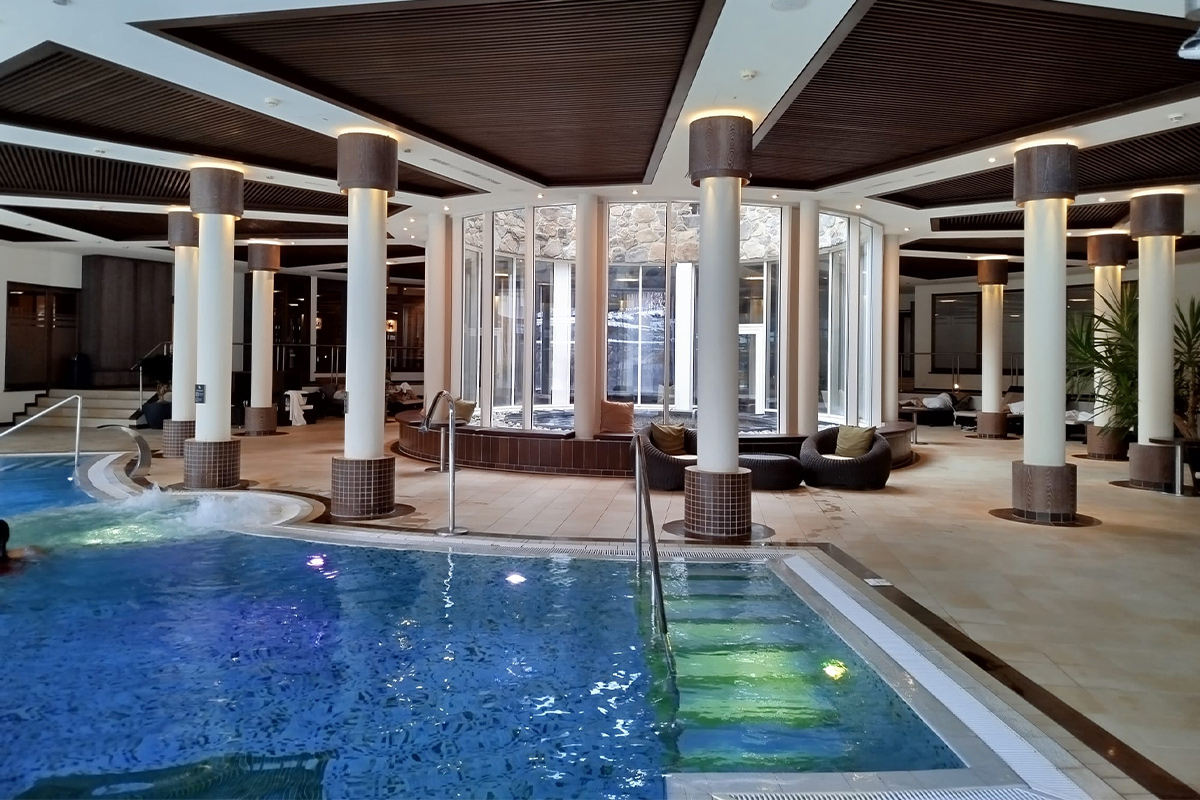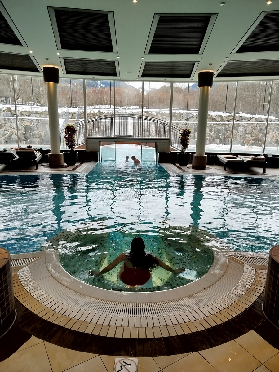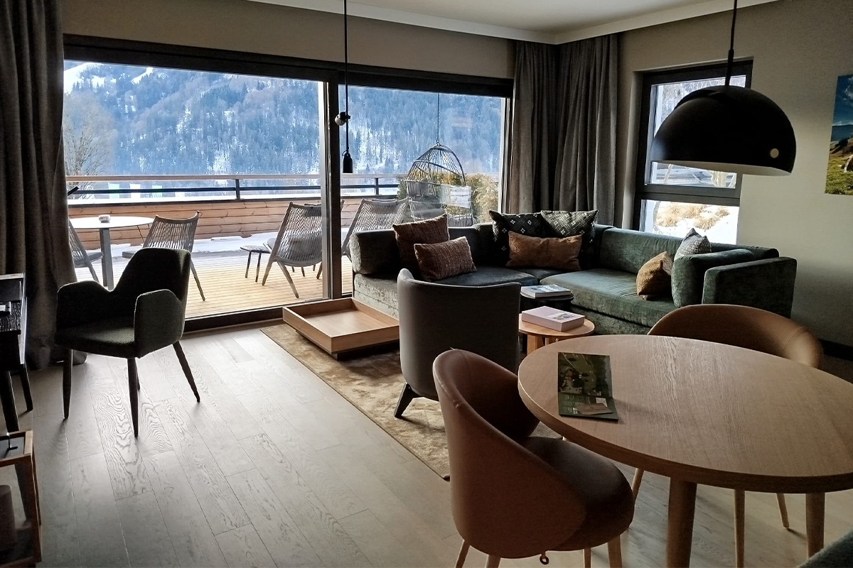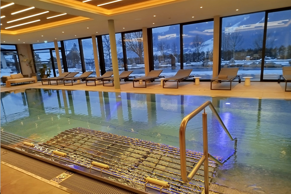 Interiéry hotela spájajú moderný alpský štýl s pohodlím a eleganciou. Izby a suity sú priestranné, väčšina s balkónom či terasou a výhľadom na nádherné horské panorámy. Srdcom hotelovej ponuky je Grand Alps Spa - rozsiahly wellness komplex rozprestierajúci sa na takmer 3000 m2, s vnútorným aj vonkajším bazénom, rôznymi typmi sáun, parnými kúpeľmi a relaxačnými zónami, ktoré pozývajú hostí na dokonalý odpočinok po lyžovačke alebo golfovom dni. Rodiny ocenia Grand Family Spa vnútorné hracie priestory, detské bazény a kino, ktoré robia hotel atraktívnou voľbou aj pre pobyty s deťmi.
