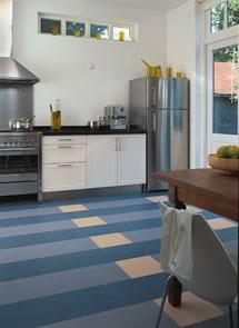 Popis k malej fotke: Podlaha marmoleum click má priamo z výroby aplikovanú krokovú podložku z korku (foto Forbo/predáva KPP)