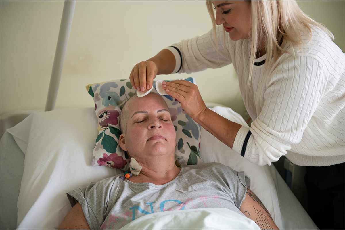2) Starostlivosť o pleť: Počas liečby je pleť pacientov často dehydratovaná a citlivá. Nemocnicu preto navštevuje dobrovoľníčka, kozmetička, ktorá pacientom bezplatne poskytuje jemnú masáž tváre a hydratáciu pomocou masiek a sér. Táto drobná starostlivosť prináša pacientom úľavu a pocit komfortu.