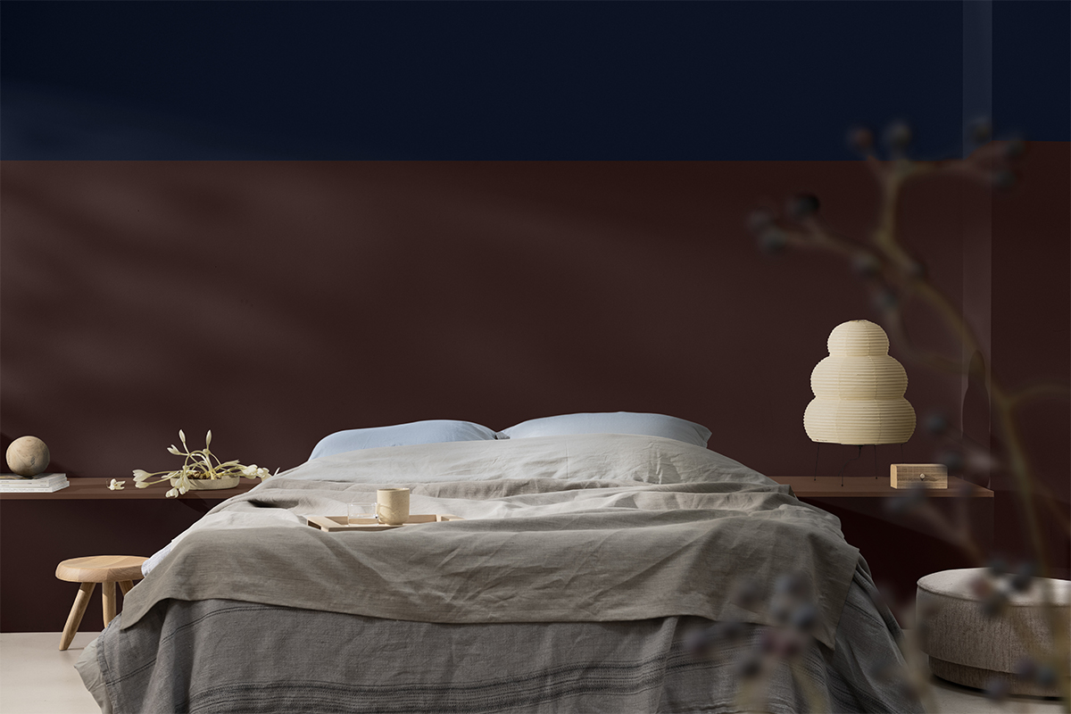 Paleta Pokoj reaguje na potrebu odpočinku a ticha v čase, keď je čoraz ťažšie vypnúť. Kombinuje jemné neutrálne tóny inšpirované zimnou krajinou s hĺbkou Námorníckej modrej (U3.15.11), ktorá dodáva priestoru stabilitu a sústredenosť. Vytvára prostredie, ktoré umožňuje spomaliť, nadýchnuť sa a dopriať si priestor na načerpanie energie – či už v spálni, v kúpeľni alebo v pracovnom kúte.