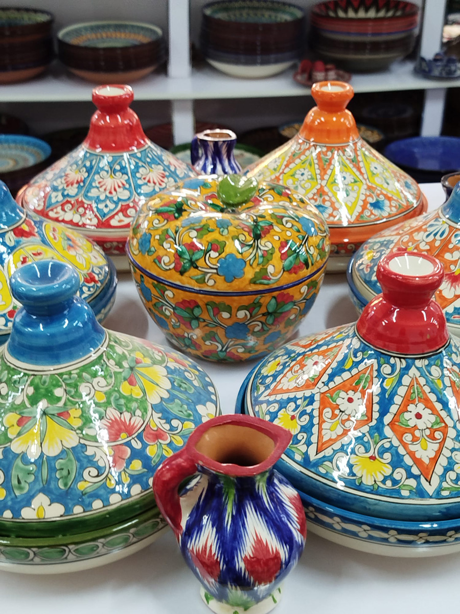 Štvrtý deň našej cesty nás čakal Rishton, mestečko známe po celom svete vďaka svojej modrej keramike. Miestni majstri používajú špeciálnu ílovitú pôdu a prírodné glazúry, aby vytvorili ručne maľované taniere, misy a dlaždice, často zdobené tradičnými vzormi v odtieňoch modrej, zelenej a bielej. Každý kúsok je umeleckým dielom a zároveň praktickým suvenírom. Koncom 19. storočia sa Rishton stal jedným z najväčších producentov keramiky v strednej Ázii, mnohé kúsky sa nachádzajú v svetoznámych múzeách. Naša skupina bola fascinovaná množstvom nádherných tanierov, šálok, váz, dlaždíc. Všetci sme nakupovali a zjednávali. Naši sprievodcovia nás naháňali, čas tlačil, nevedeli sme sa od tej krásy odtrhnúť.