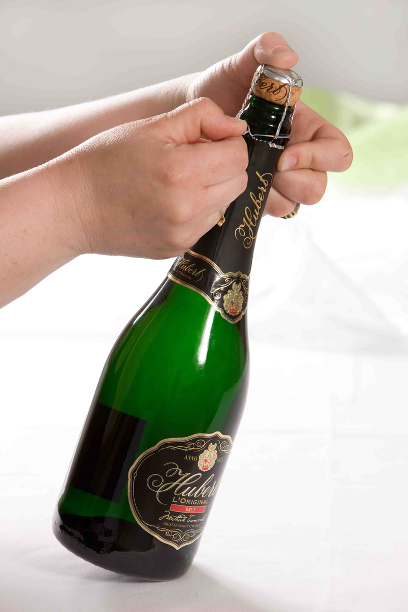 6. Najočakávanejšia časť ešte len prichádza, a tou je otváranie fľaše. Pri otváraní vždy nakloňte fľašu sektu mierne šikmo. Plastový uzáver uvoľňujte pomalými kývavo-otáčavými pohybmi, kým sa neuvoľní. Ak má fľaša korkovú zátku, držte pevne v ruke zátku a otáčajte iba fľašou v smere hodinových ručičiek.