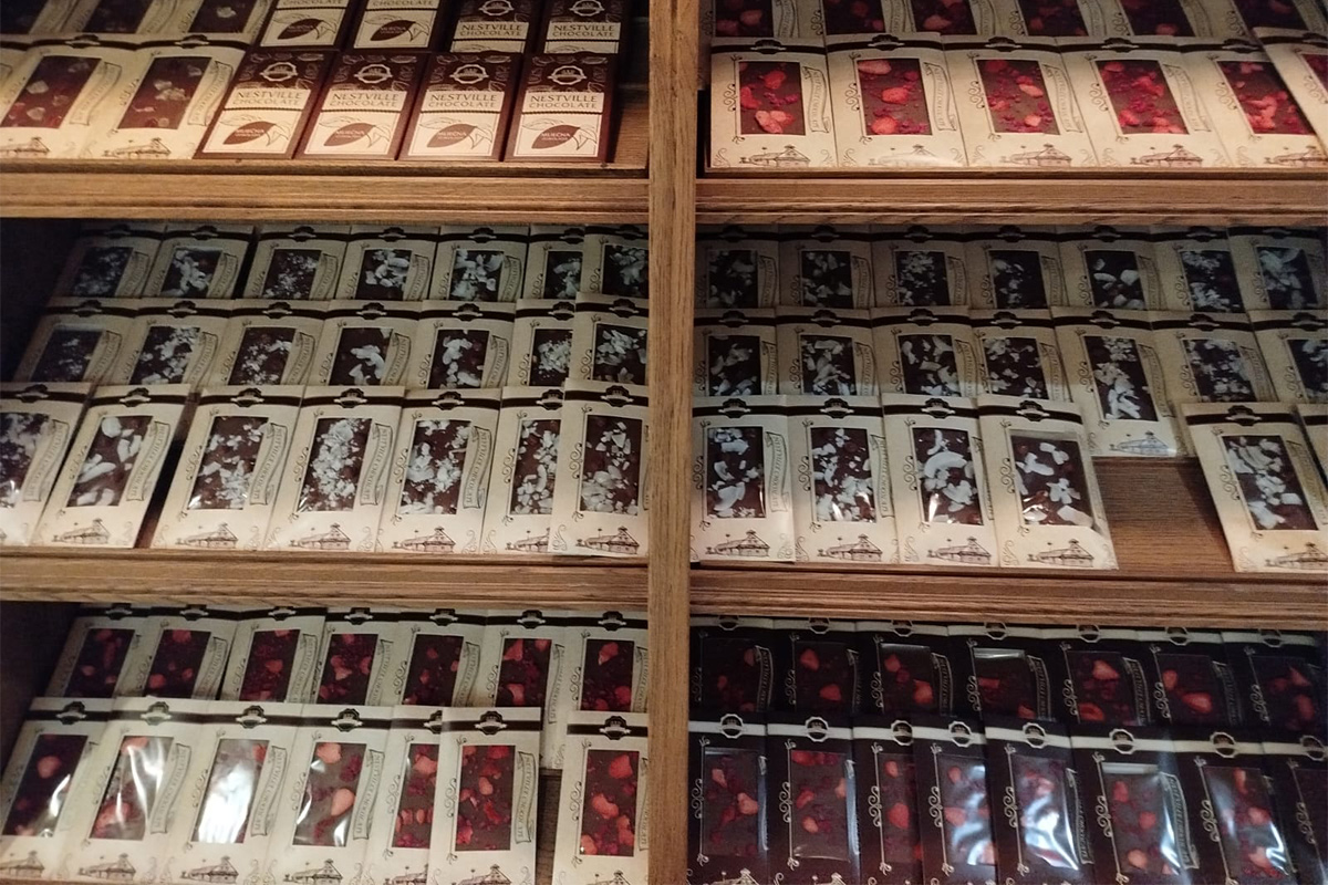 Okrem whisky si Nestville získal meno aj vďaka vlastnej čokoládovni, ktorá je súčasťou areálu. Vyrábajú sa tu ručne robené pralinky, tabuľkové čokolády, nugáty a čokoládové likéry, ktoré kombinujú kvalitnú belgickú čokoládu s miestnymi surovinami a dokonca aj s kvapkou Nestville whisky. Čokoláda z Hniezdneho je dôkazom, že aj na Slovensku môže vzniknúť produkt svetovej úrovne. Súčasťou čokoládovne je aj čokoládový bar a kaviareň, kde si návštevníci môžu vychutnať horúcu čokoládu, dezerty či netradičné spojenie whisky a čokolády v jednom pohári. Pre deti i dospelých sú pripravené ukážky výroby, ochutnávky a možnosť vytvoriť si vlastnú čokoládu.