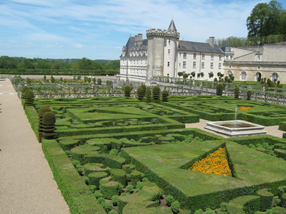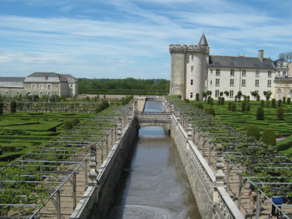 Výnimočnosť zámku spočíva aj v danej lokalite, vďaka ktorej vznikli nádherné záhrady v dokonalej harmónii s prírodou a kamennou stavbou. Údolie umožnilo pretvoriť systém záhrad na troch terasách aj vďaka riečke, ktorá steká do rieky Loire.