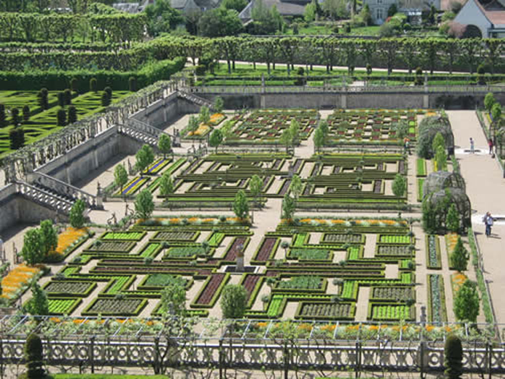 Spojením týchto dvoch vplyvov v 16.storočí, francúzsky záhradníci vytvorili záhrady POTAGERE. Štvorcové záhony pripomínajú pestrú šachovnicu, vďaka zelenine najrozmanitejších farieb.