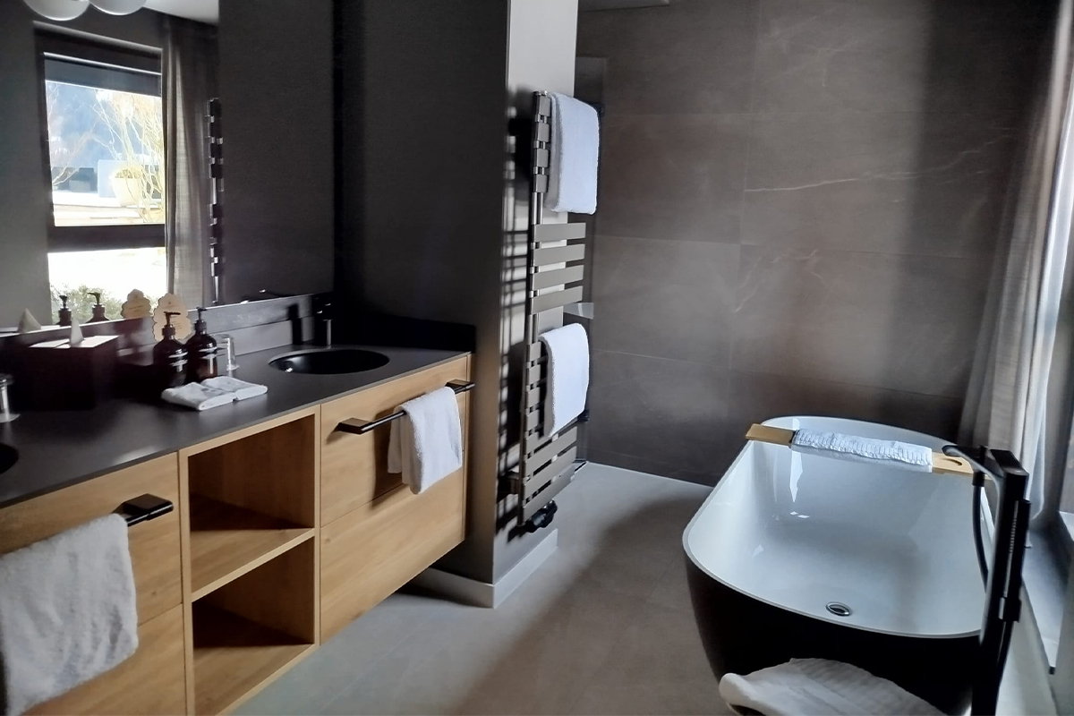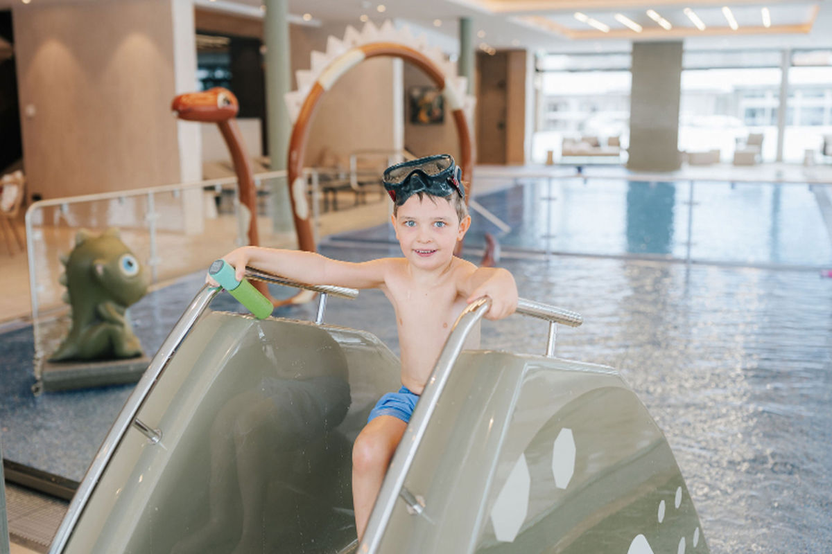 Interiéry hotela spájajú moderný alpský štýl s pohodlím a eleganciou. Izby a suity sú priestranné, väčšina s balkónom či terasou a výhľadom na nádherné horské panorámy. Srdcom hotelovej ponuky je Grand Alps Spa - rozsiahly wellness komplex rozprestierajúci sa na takmer 3000 m2, s vnútorným aj vonkajším bazénom, rôznymi typmi sáun, parnými kúpeľmi a relaxačnými zónami, ktoré pozývajú hostí na dokonalý odpočinok po lyžovačke alebo golfovom dni. Rodiny ocenia Grand Family Spa vnútorné hracie priestory, detské bazény a kino, ktoré robia hotel atraktívnou voľbou aj pre pobyty s deťmi.