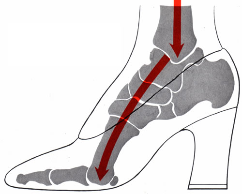 Vedeli ste, že už šesť centimetrový opätok presúva hmotnosť tela o 75% na prednú časť chodidla? Predstavte si, čo sa stane pri 12 centimetrovom opätku...